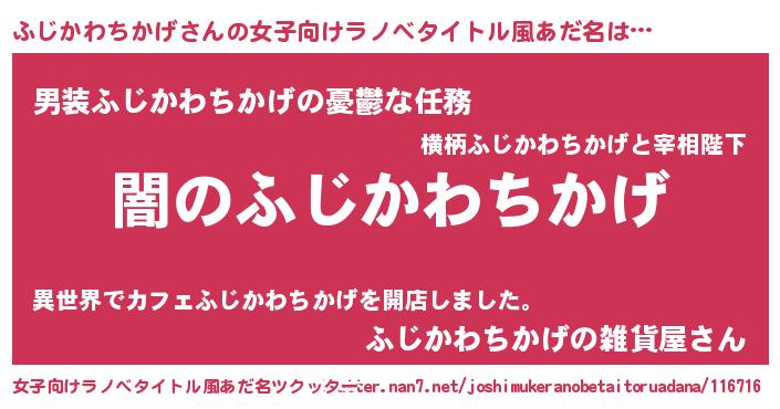 | 意味不明あだ名 | 『自称ふじかわちかげ』 |
