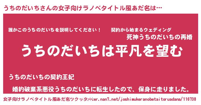 | 胡散臭い通販商品みたいなあだ名 | 『信頼と実績のサプリメント…その名も「うちのだいち」』 |