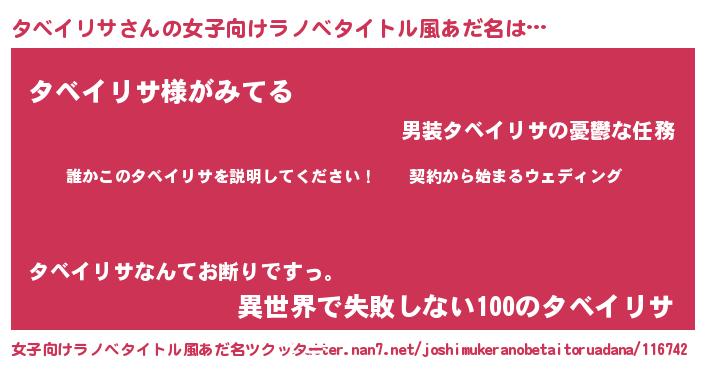 | 男性向けラノベタイトル風あだ名 | 『タベイリサアートオンライン』 |