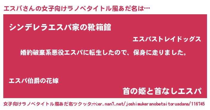 | 男性向けラノベタイトル風あだ名 | 『エスパスレイヤー』『緋弾のエスパ』 |