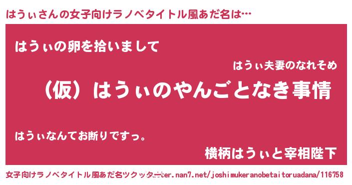 | 男性向けラノベタイトル風あだ名 | 『はうぃの憂鬱』『魔法科高校のはうぃ』 |