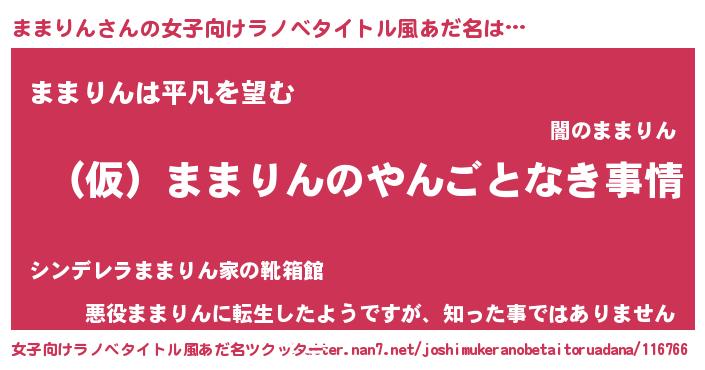 | 胡散臭い通販商品みたいなあだ名 | 『必ず成功するブレスレット…その名も「ままりん」』 |