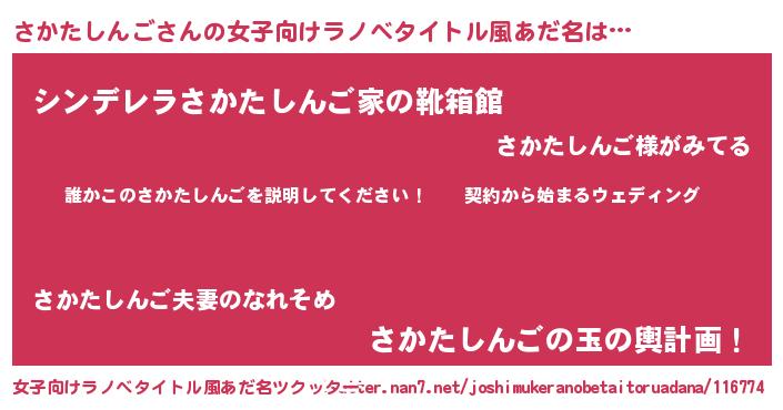 | 男性向けラノベタイトル風あだ名 | 『サカタシンゴアートオンライン』 |