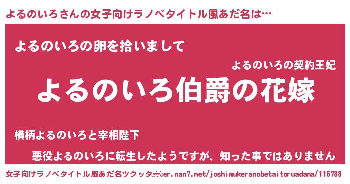 | 男性向けラノベタイトル風あだ名 | 『やはりよるのいろの青春ラブコメはまちがっている 』 |