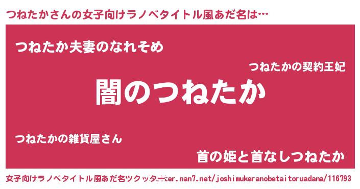 | 男性向けラノベタイトル風あだ名 | 『Re:つねたかから始める異世界生活』 |