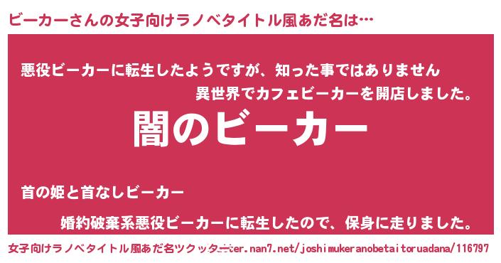 | 男性向けラノベタイトル風あだ名 | 『Re:ビーカーから始める異世界生活』 |