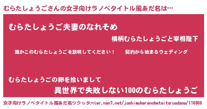 | 胡散臭い通販商品みたいなあだ名 | 『億万長者になれるブレスレット…その名も「むらたしょうご」』 |