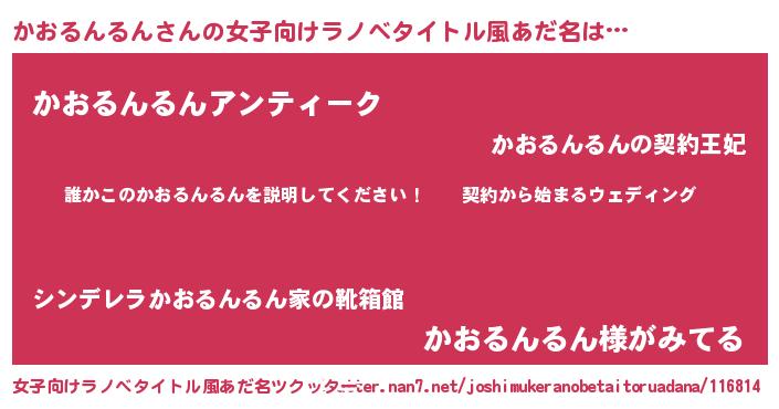 | 男性向けラノベタイトル風あだ名 | 『カオルンルンアートオンライン』 |