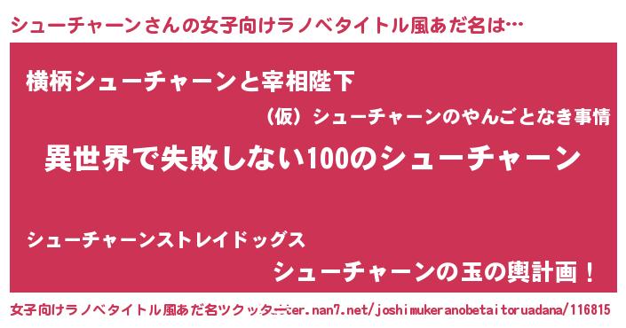 | 胡散臭い通販商品みたいなあだ名 | 『絶対に幸福をもたらす健康食品…その名も「シューチャーン」』 |