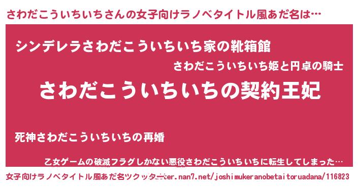 | 男性向けラノベタイトル風あだ名 | 『さわだこういちいちという概念が存在しない退屈な世界 』 |