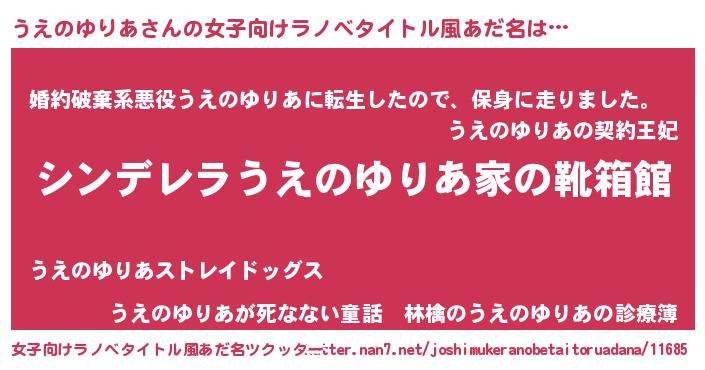 | 男性向けラノベタイトル風あだ名 | 『緋弾のウエノユリア』 |