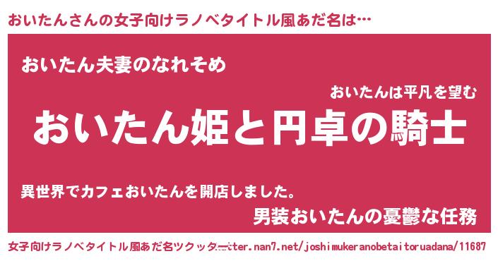 | 男性向けラノベタイトル風あだ名 | 『おいたんの憂鬱』 |