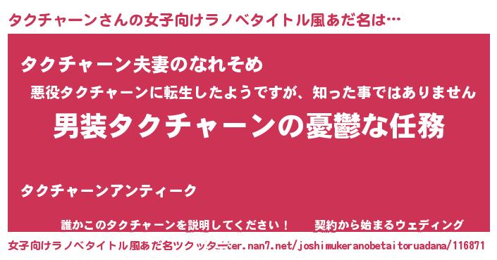 | 男性向けラノベタイトル風あだ名 | 『うちのタクチャーンが世界を掌握している!』 |