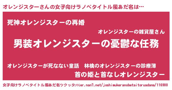 | 男性向けラノベタイトル風あだ名 | 『冴えないオレンジスターの育てかた』 |