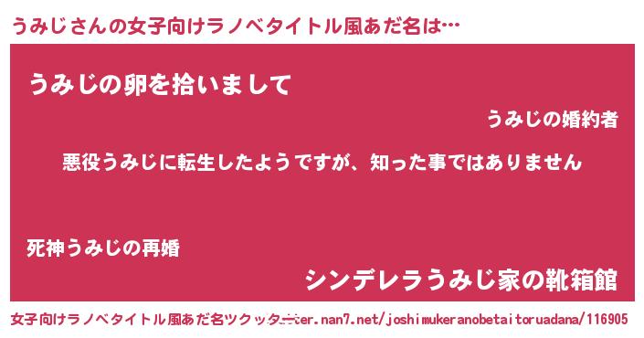 | 男性向けラノベタイトル風あだ名 | 『この素晴らしい世界にうみじを!』 |
