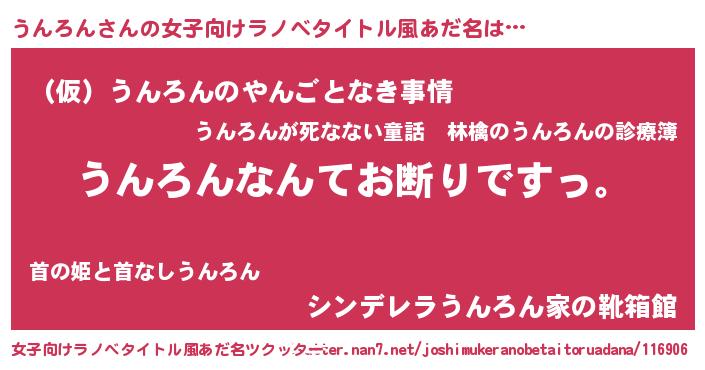 | ヘコむあだ名 | 『うんにゅー』『うんろん(苦笑)』 |