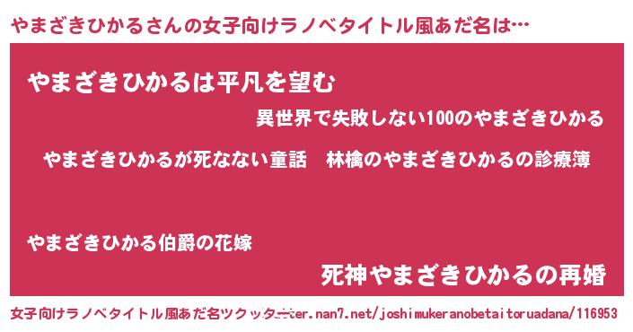 | ポケモン風あだ名 | 『ヤーマイ』『ヒヤマザキヒカル』 |