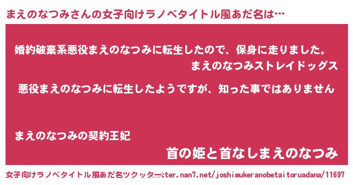 | 男性向けラノベタイトル風あだ名 | 『この素晴らしい世界にまえのなつみを!』 |