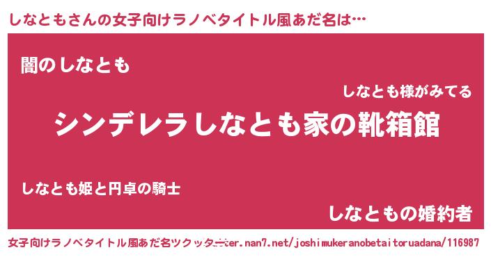 | 男性向けラノベタイトル風あだ名 | 『緋弾のシナトモ』 |