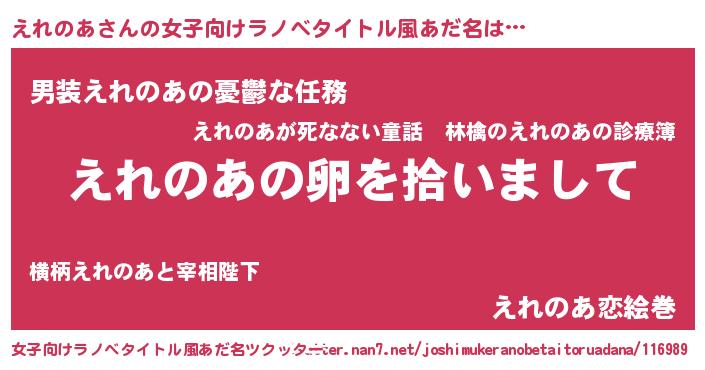 | 男性向けラノベタイトル風あだ名 | 『ダンジョンにえれのあを求めるのは間違っているだろうか』 |