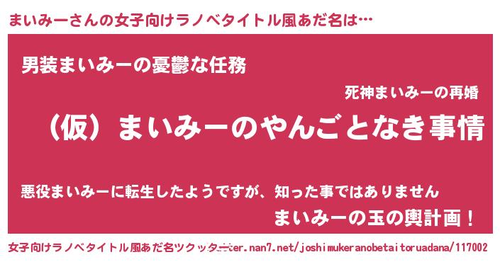 | 男性向けラノベタイトル風あだ名 | 『まいみーの憂鬱』 |