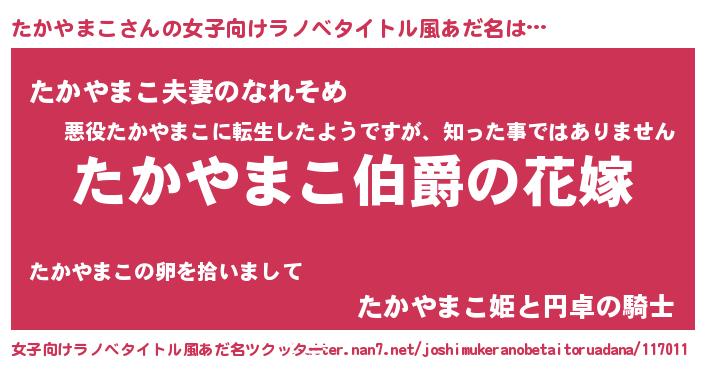 | 男性向けラノベタイトル風あだ名 | 『やはりたかやまこの青春ラブコメはまちがっている 』 |