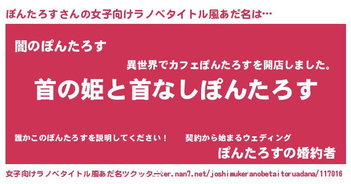 | 男性向けラノベタイトル風あだ名 | 『はたらくぽんたろすさま!』 |
