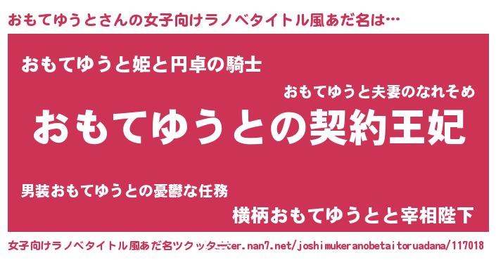 | 男性向けラノベタイトル風あだ名 | 『おもてゆうとという概念が存在しない退屈な世界 』 |