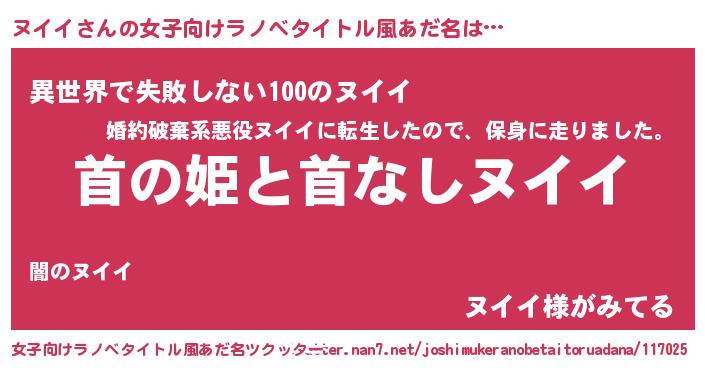 | ヘコむあだ名 | 『ヌイイ(笑)』『ヌイっ子』 |