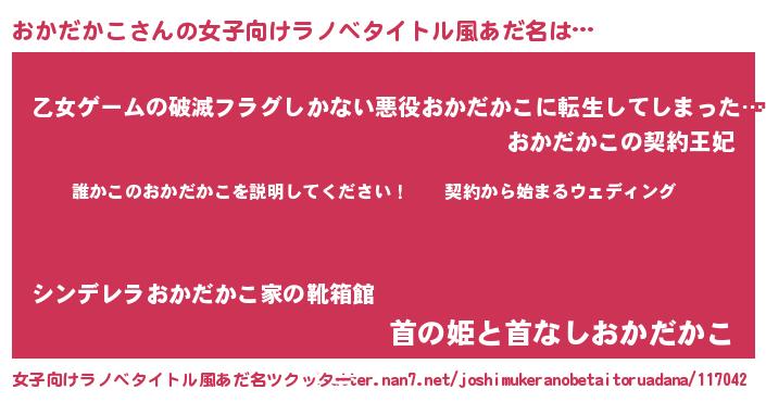 | 男性向けラノベタイトル風あだ名 | 『オカダカコアートオンライン』 |