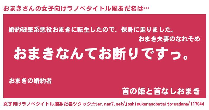 | 胡散臭い通販商品みたいなあだ名 | 『ガンによく効く高麗人参…その名も「おまき」』 |