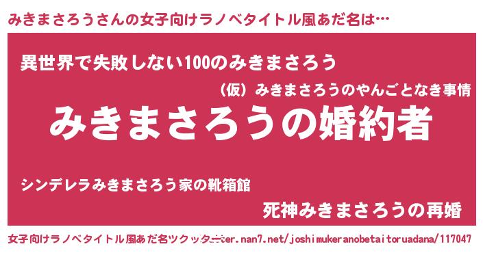 | 意味不明あだ名 | 『みきまさろうフォーエバー』 |