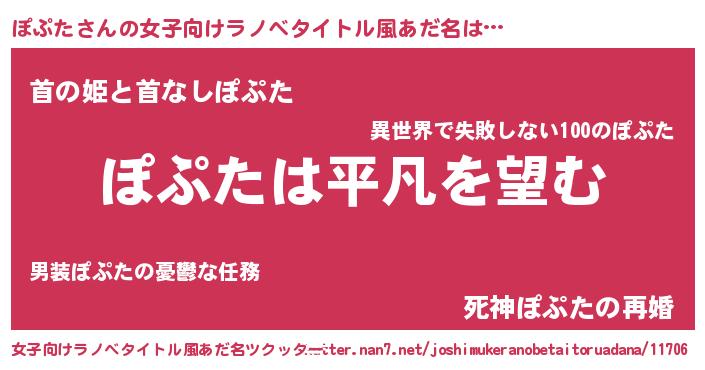 | 男性向けラノベタイトル風あだ名 | 『ダンジョンにぽぷたを求めるのは間違っているだろうか』 |