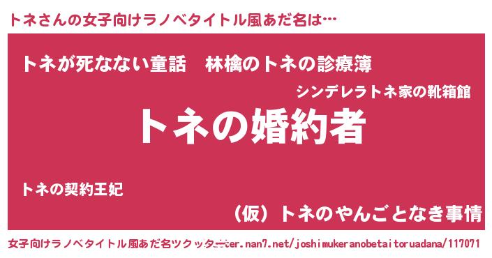 | 胡散臭い通販商品みたいなあだ名 | 『運命の人と巡り会える高級そうな絵画…その名も「トネ」』 |