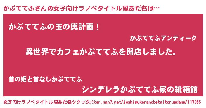 | 男性向けラノベタイトル風あだ名 | 『誰もが恐れるあのかぷててふが、ぼくの専属メイドになるようです。』 |