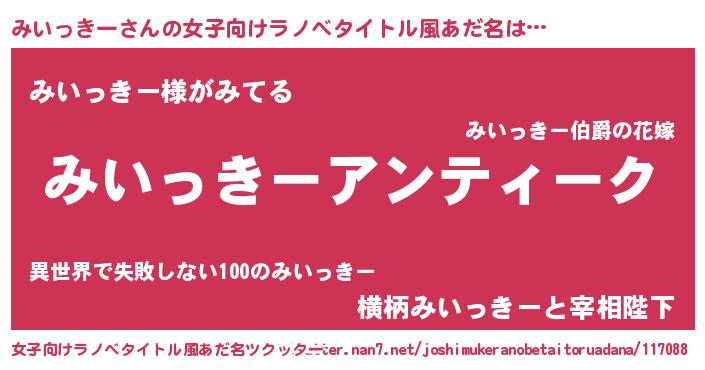 | 男性向けラノベタイトル風あだ名 | 『魔法科高校のみいっきー』 |