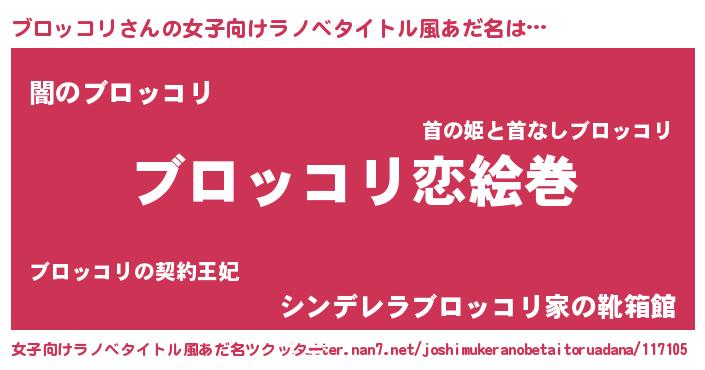 | 男性向けラノベタイトル風あだ名 | 『ノーゲーム・ノーブロッコリ』 |