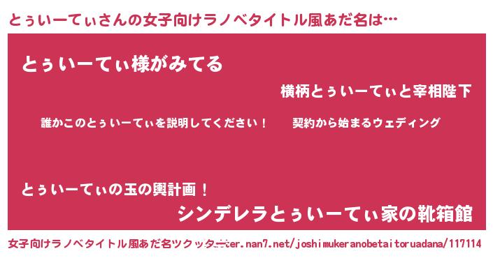 | 男性向けラノベタイトル風あだ名 | 『トゥイーティアートオンライン』 |