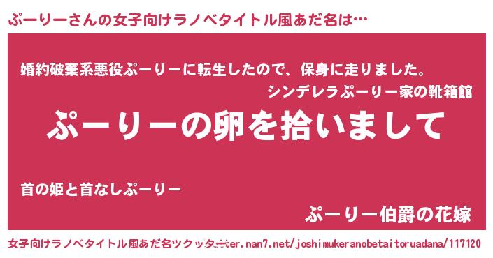 | 男性向けラノベタイトル風あだ名 | 『ダンジョンにぷーりーを求めるのは間違っているだろうか』 |