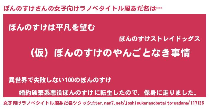 | 男性向けラノベタイトル風あだ名 | 『ぼんのすけの憂鬱』 |