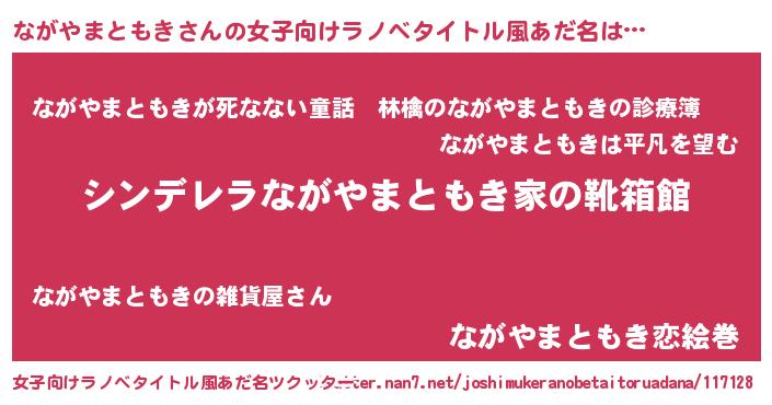 | 意味不明あだ名 | 『住所不定無職ながやまともき(9歳)』 |