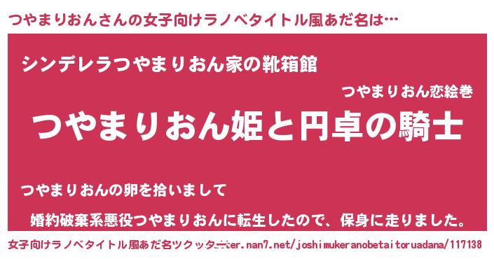 | 男性向けラノベタイトル風あだ名 | 『つやまりおんの憂鬱』 |