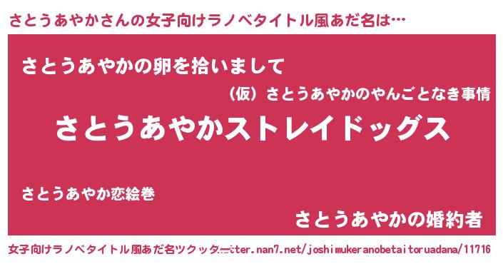 | 意味不明あだ名 | 『自称さとうあやか』 |