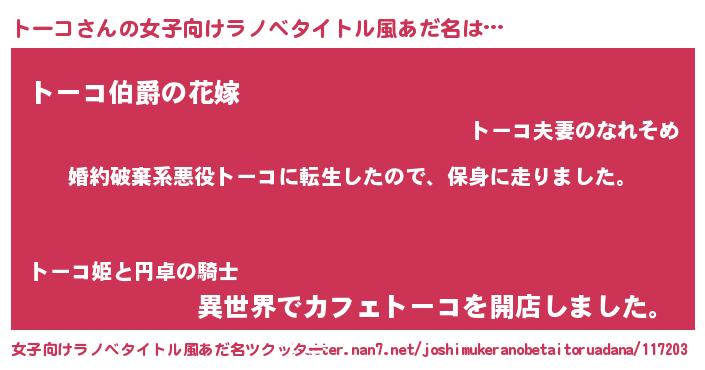 | 胡散臭い通販商品みたいなあだ名 | 『幸せが訪れる高級そうな皿…その名も「トーコ」』 |