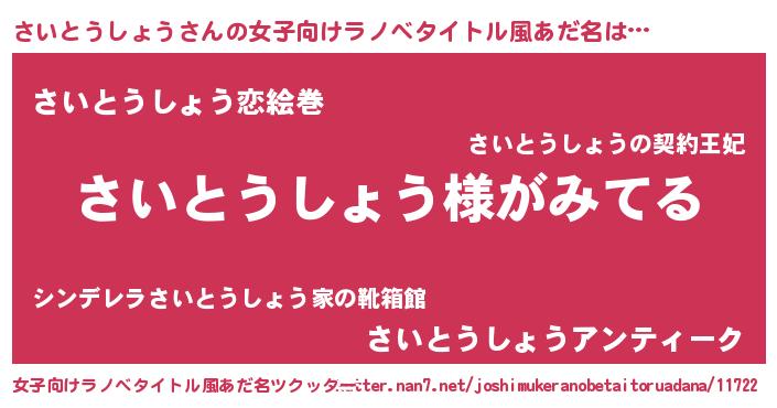 | 意味不明あだ名 | 『とにかく怪しいさいとうしょう』 |