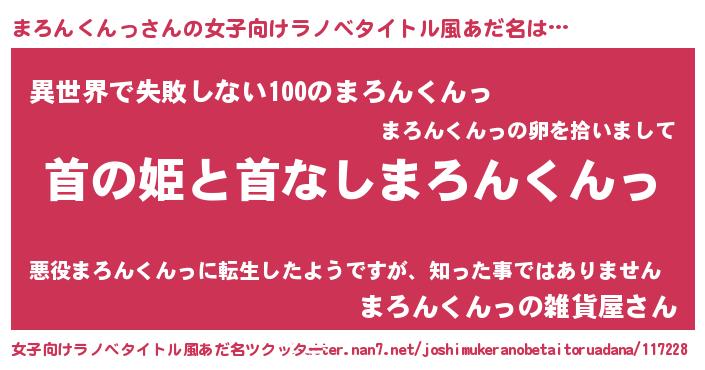 | 男性向けラノベタイトル風あだ名 | 『はたらくまろんくんっさま!』 |