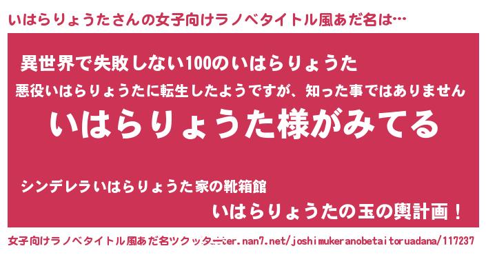 | 男性向けラノベタイトル風あだ名 | 『いはらりょうたの嫁は女の子じゃないと思った?』 |