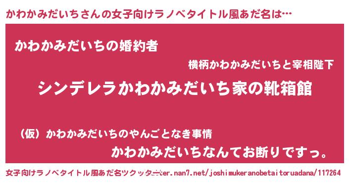 | 伝説のあだ名 | 『秘められし陰陽師かわかみだいち』 |