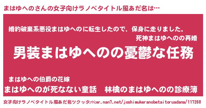 | 伝説のあだ名 | 『救世主となる占い師まはゆへの』 |