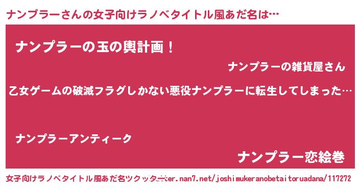 | 意味不明あだ名 | 『住所不定無職ナンプラー(71歳)』 |